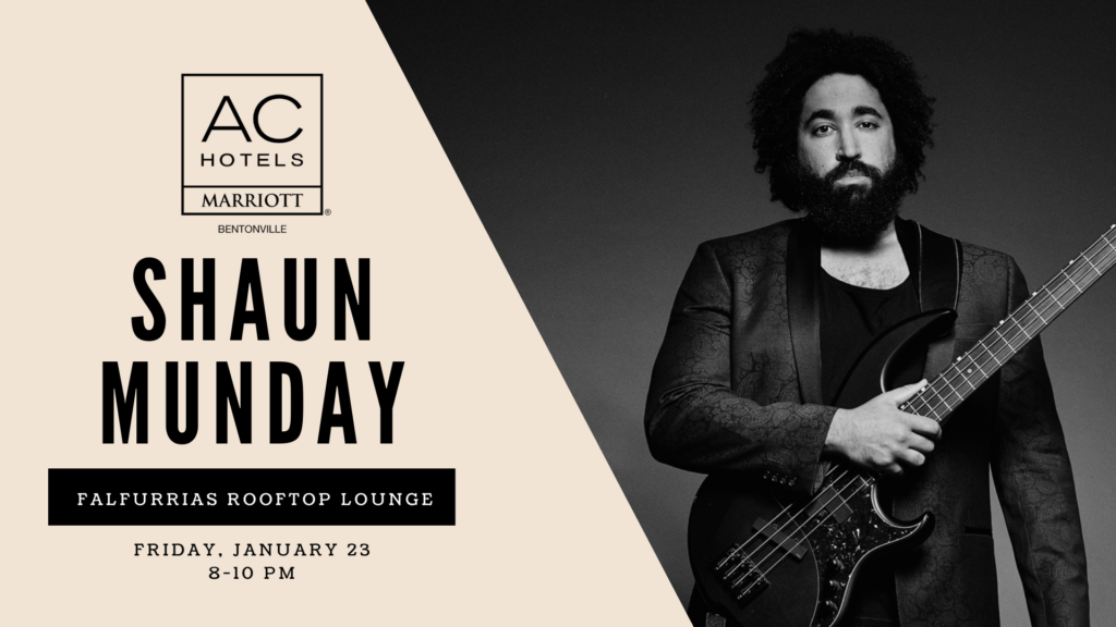 Ease into your Friday night with live music, handcrafted cocktails, and sweeping rooftop views as Shaun Munday takes the stage at Falfurrias Rooftop Lounge, perched atop the AC Hotel Bentonville.