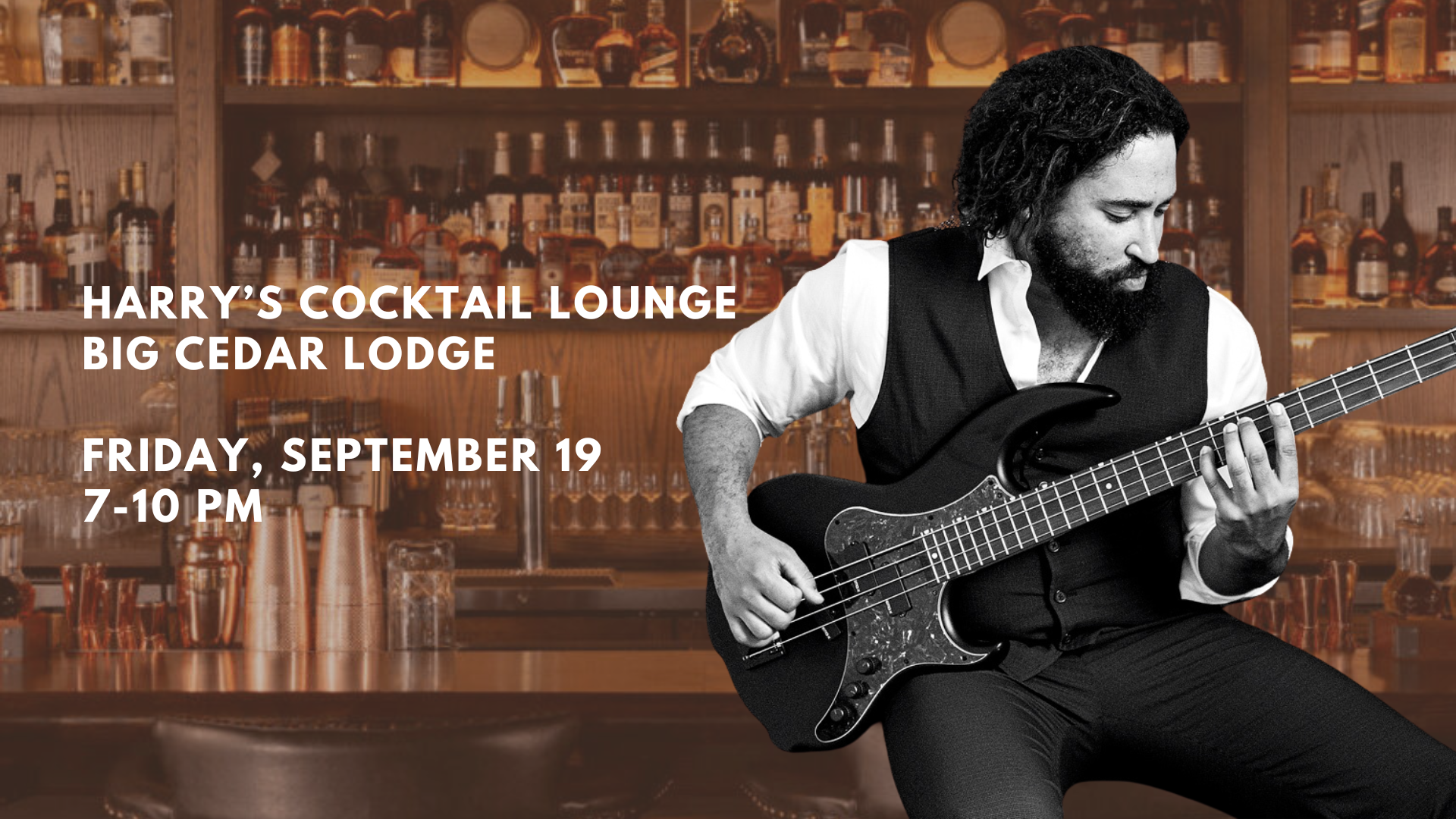 Friday, September 19 • 7:00–10:00 PM Harry’s Cocktail Lounge at Big Cedar Lodge | Ridgedale, MO Get ready…
