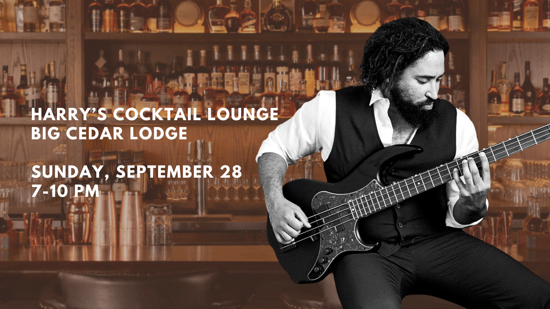 Sunday, September 28 • 7:00–10:00 PM Harry’s Cocktail Lounge at Big Cedar Lodge | Ridgedale, MO Get ready…